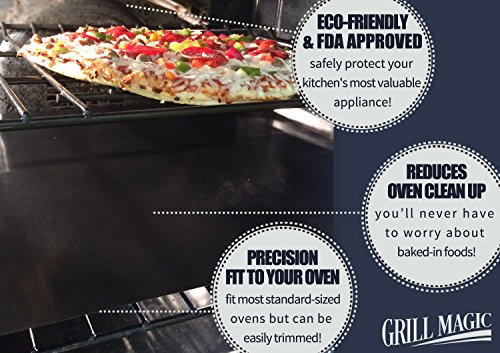 Details: Protect your oven and reduce cleanup time with heat-resistant, non-stick oven liners from Grill Magic that catch food, drippings and liquids.