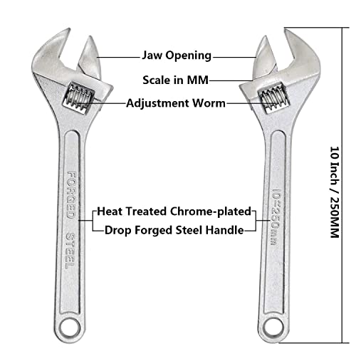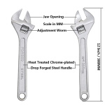 Details: 6 8 10 12 Inch Silver Adjustable Wrench, 25mm Wide Jaw Opening, Drop Forged Steel Heat Treated Chrome-plated, Professional Garage DIY Classic Proto Tools
