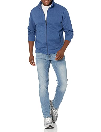 Amazon Essentials Men’s Full-Zip Fleece Mock Neck Sweatshirt, Blue Heather, Large