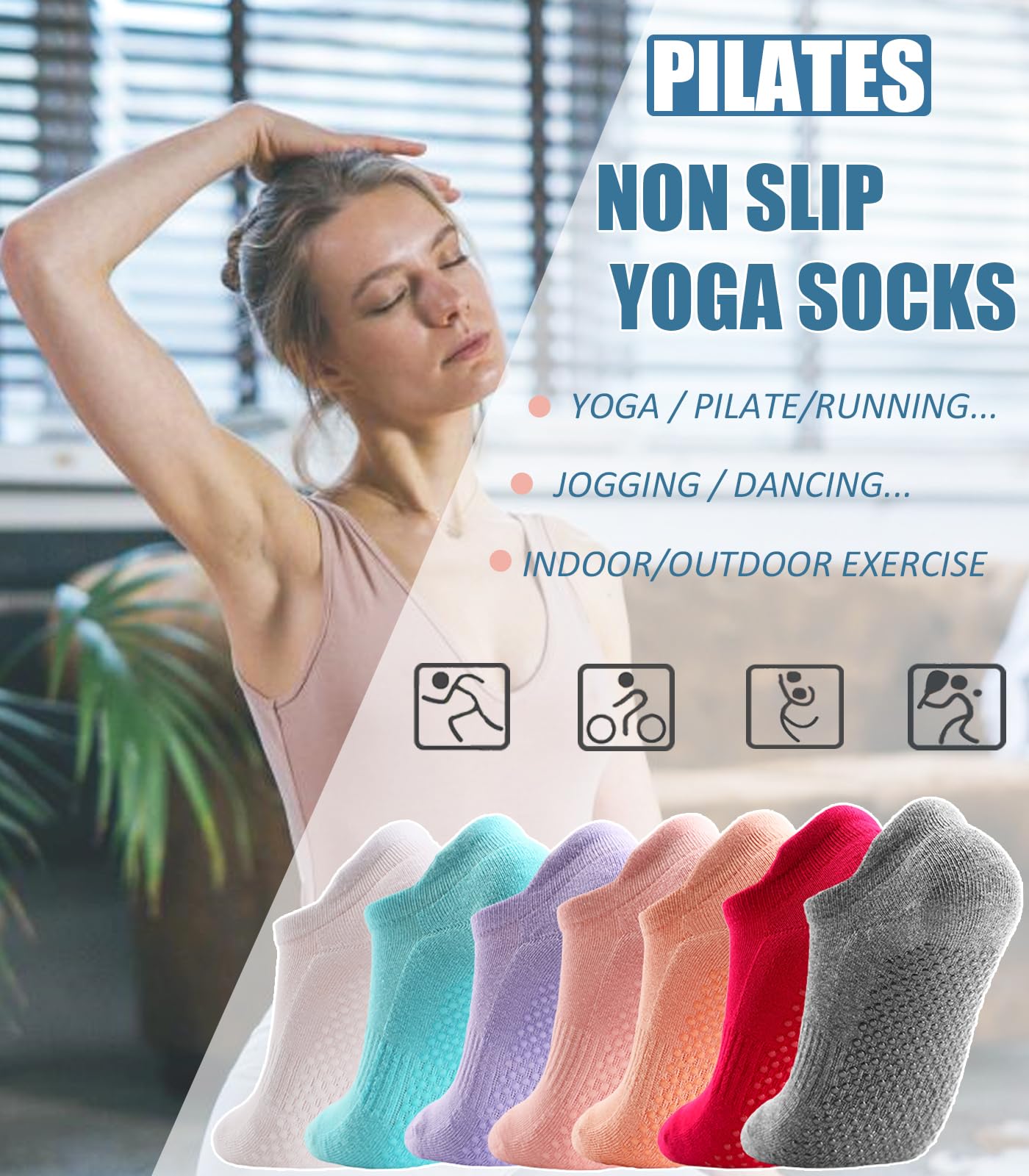 • [Application]: Perfect equipment for indoor exercise, yoga, pilate, jogging, dancing…or daily wearing. Suitable as hospital socks, athletic socks, fluffy socks, slipper socks… In the living room or bedroom.