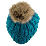 C.C Thick Cable Knit Faux Fuzzy Fur Pom Fleece Lined Skull Cap Cuff Beanie, Teal