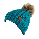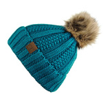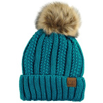Home Clothing, Shoes & Jewelry C.C Thick Cable Knit Faux Fuzzy Fur Pom Fleece Lined Skull Cap Cuff Beanie, Teal