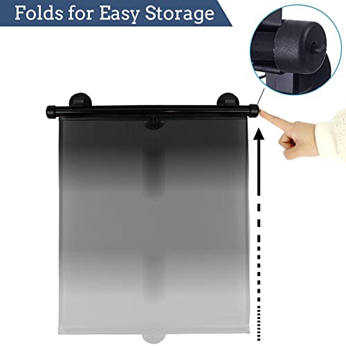 • 【Retractable Car Window Shades】You can adjust the length of the sun shade for car window to suit your needs. The adjustable car window shade for baby is designed with a quick retract button. Just press the button, the universal car sunshade can roll up automatically.You could put away the car window shades for side window without any effort. Car sun shade also comes with a storage bag, so it is quite easy to store when not in use.