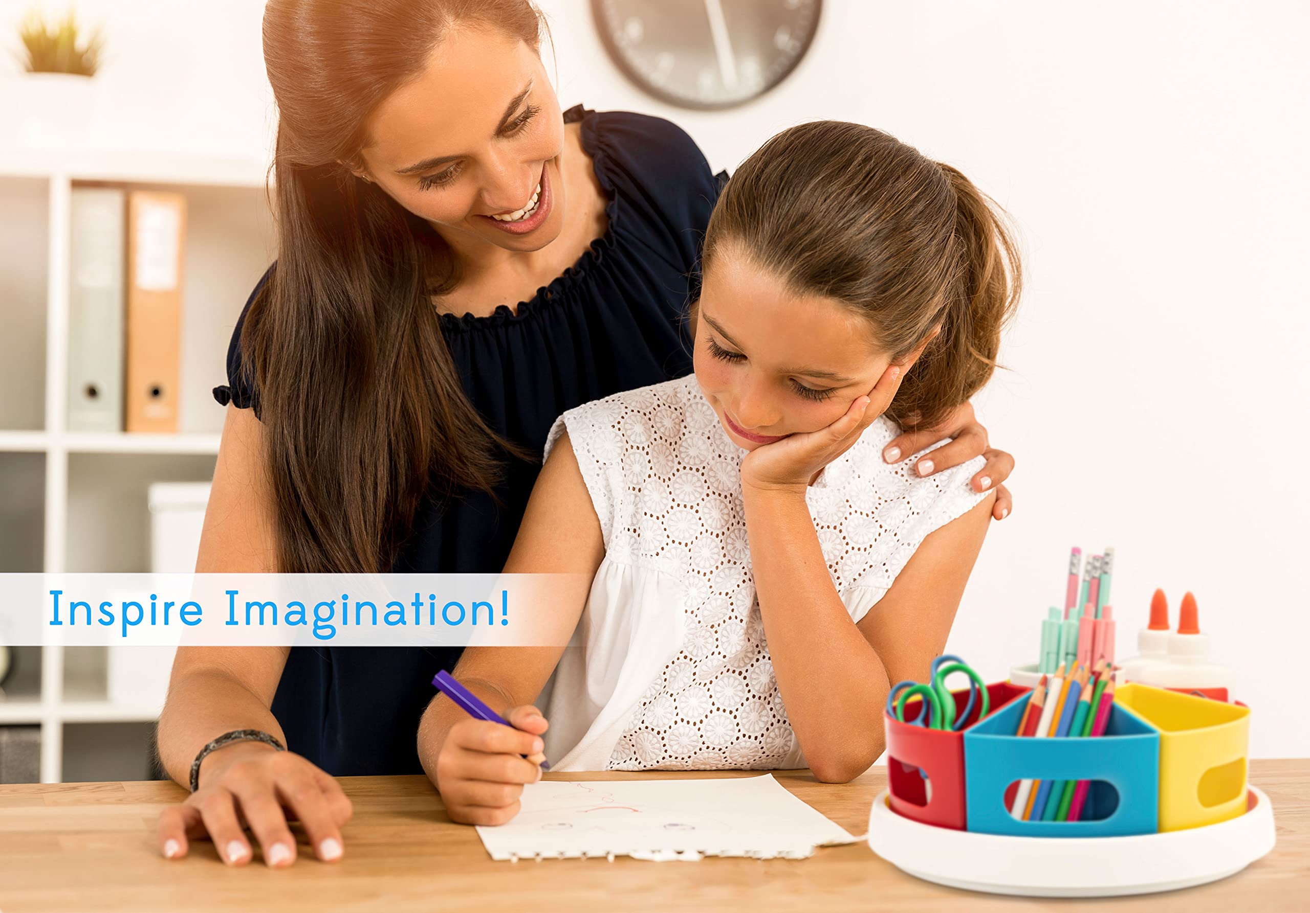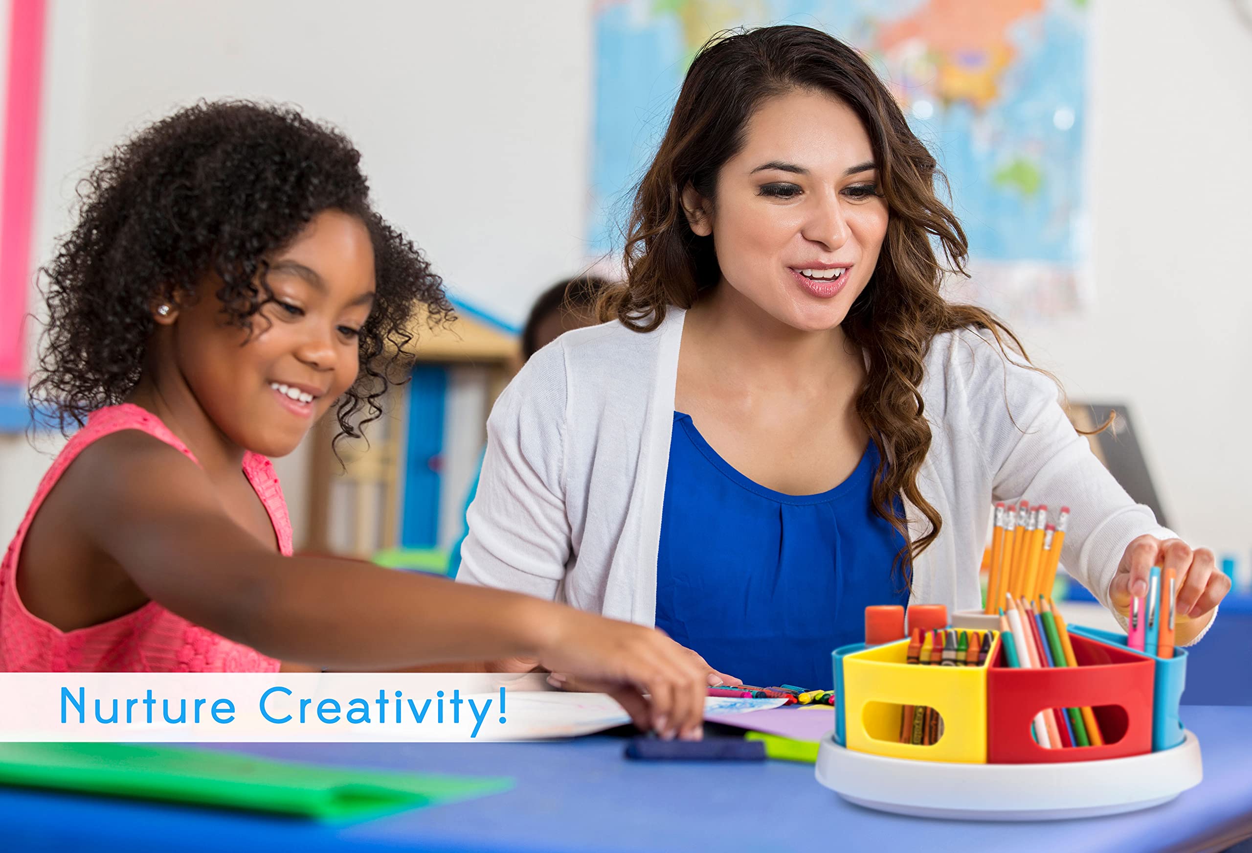 Creative Caddy Rotating Art Supplies Organizer Storage Caddy for Kids Desk, Crayon Marker and Pencil Organization for Teachers, Classroom Arts and Crafts at Home, Homeschool and School Supplies