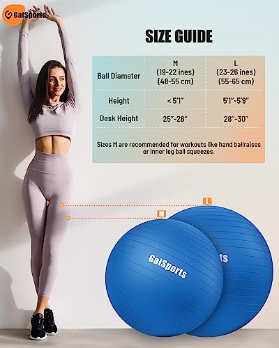 GalSports Yoga Ball Exercise Ball for Working Out, Anti-Burst and Slip Resistant Stability Ball, Swiss Ball for Physical Therapy, Balance Ball Chair, Home Gym Fitness