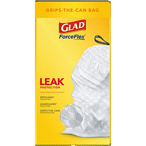 Details: Keep your trash contained with the durability and quality of Glad. Glad Tall Kitchen Drawstring Trash bags are designed with ForceFlex technology to give extra flex as it expands around sharp edges and heavy loads, so you can pack it in without ripping. These dual-layered trash bags feature RipGuard and LeakGuard technology to resist punctures, rips and tears, and the seepage of liquids. Let the stretchable strength of Glad handle all the messes our busy daily life can throw at it and then some. The durable Grips-The-Can Drawstring ensures that the bag stays in place, and provides a sturdy 3-ply handle making it easy to lift, carry, and toss the bag. Tough and resilient, Glad can handle some abuse, so shake the trash deeper into the bag while keeping everything contained. Take on trash with the confidence of Glad. Comparable to simplehuman H, Q, P, K, M, N, J can liners and fit with simplehuman 58L Rectangular Dual Compartment Kitchen Step Trash Cans, 50L Rectangular Kitchen Step Trash Cans, 40L Slim Kitchen Step Trash Cans, 45L Rectangular Kitchen Step Trash Cans, 45L Slim Kitchen Step Trash Cans.