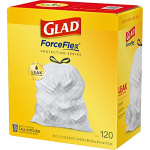 Glad® ForceFlex Tall Kitchen Drawstring Trash Bags, 13 Gallon, Unscented, 120 Count.