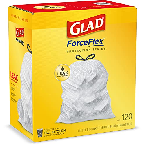 Home Home & Kitchen Glad® ForceFlex Tall Kitchen Drawstring Trash Bags, 13 Gallon, Unscented, 120 Count.