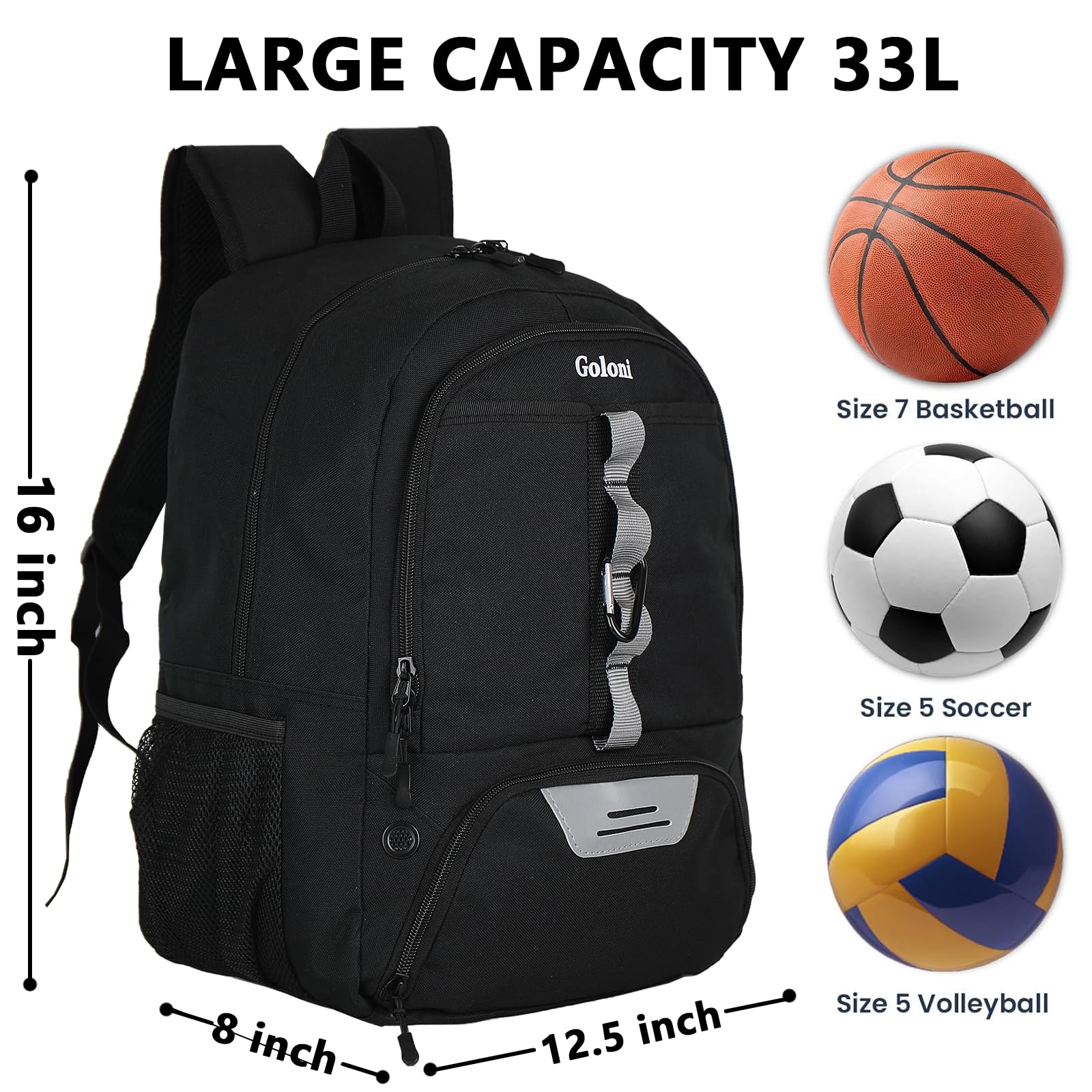 Goloni | Youth Basketball Soccer Backpack Bag – Soccer Backpack & Bags for Basketball, Volleyball & Football Sports, Includes Separate Cleat Shoe and Ball Compartment