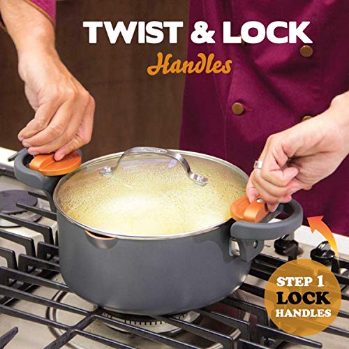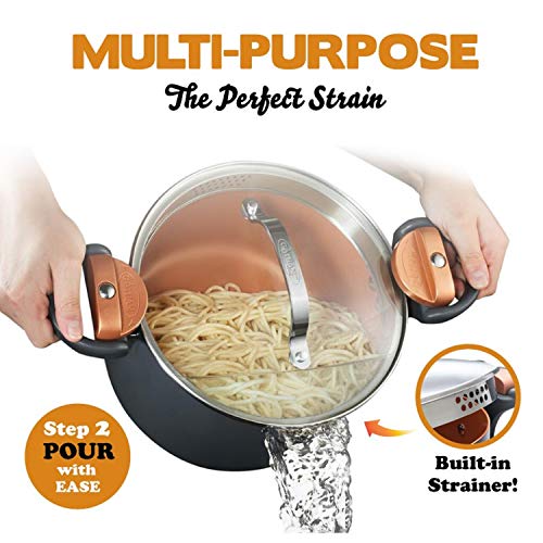 Gotham Steel 5 Quart Stock Multipurpose Pasta Pot with Strainer Lid & Twist and Lock Handles, Nonstick Ceramic Surface Makes for Effortless Cleanup with Tempered Glass Lid, Dishwasher Safe, Graphite