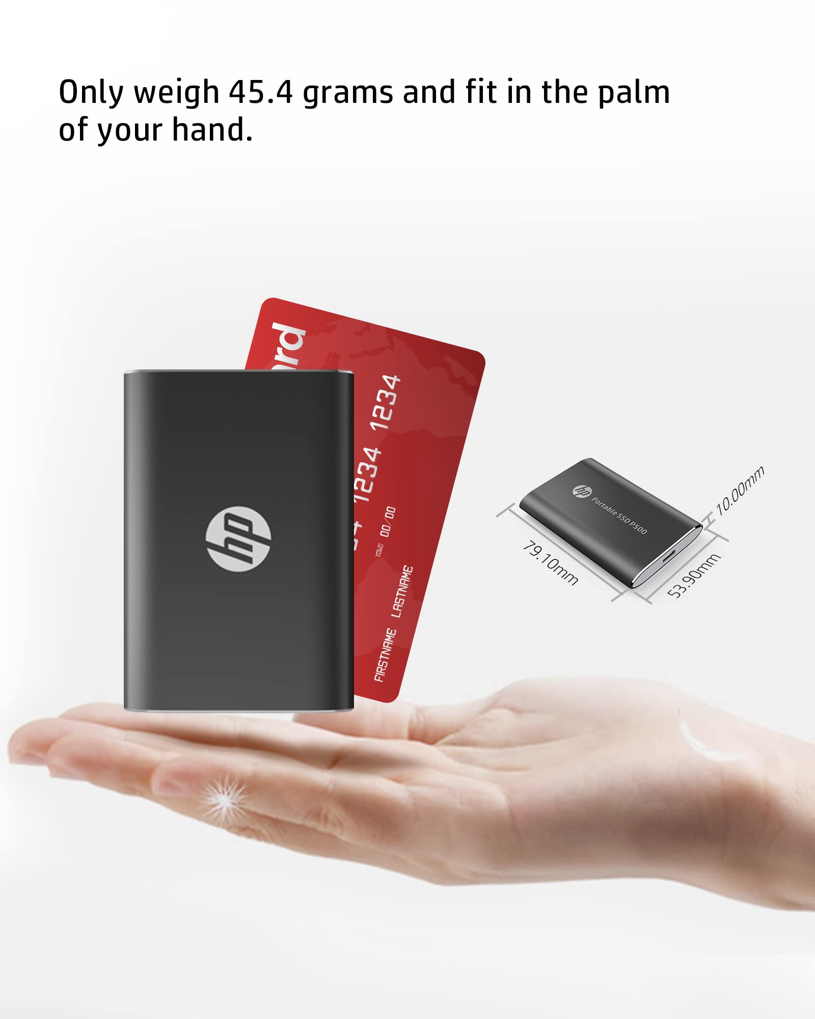 • CABLES INCLUDED FOR MULTI-DEVICE COMPATIBILITY:Comes with USB Type C-to-A cable and Type A-to-C adaptor, the HP P500 supports new-gen USB 3.2 Gen 1 interface and is compatible with PC, Mac, Android devices, gaming consoles, and more.