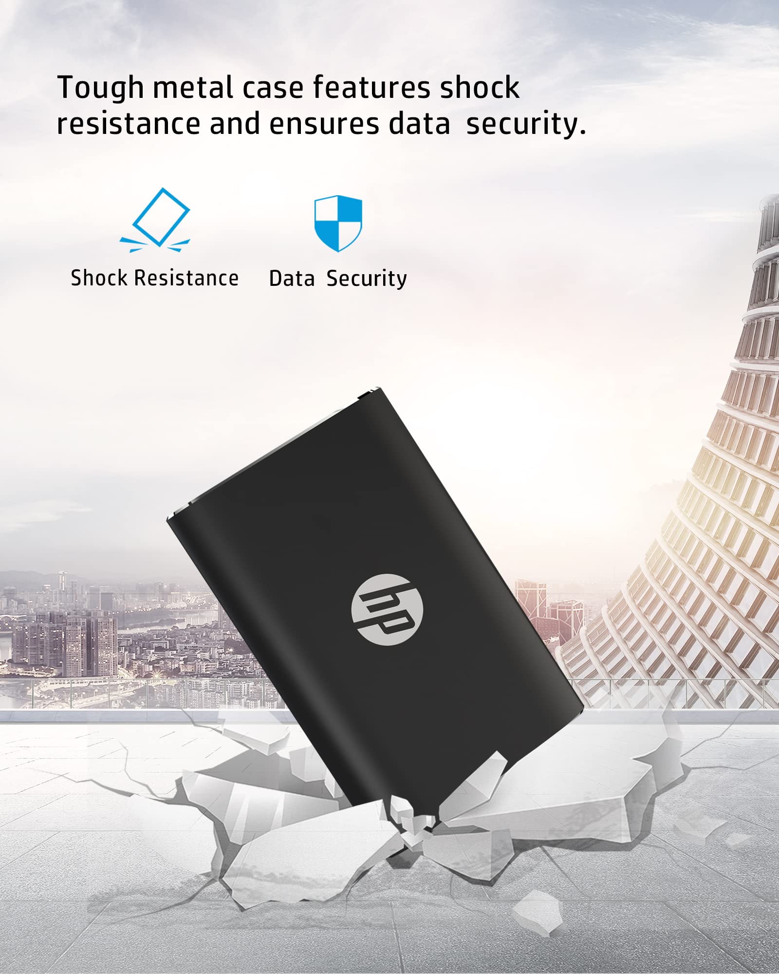 • BUILT FOR STRENGTH AND SECURITY: The HP P500 has no moving parts so it’s more resistant to shock. Its solid aluminum alloy body adds further protection, keeping your data secure from falls—and private.