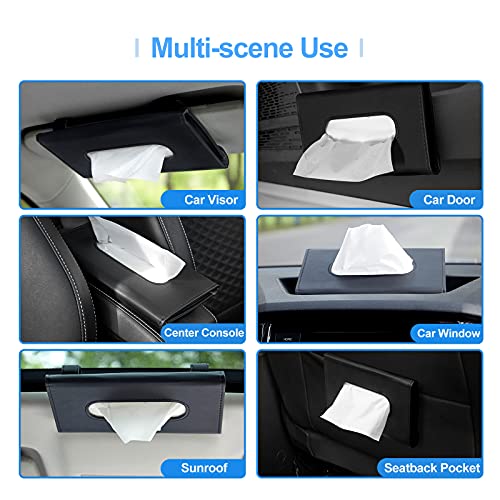 HZAZF Car Tissue Holder, [Upgraded Version] Hanging Tissue Holder for Car, Premium PU Leather Car Tissue Holder Visor for Universal Auto, Easy Use (Black)