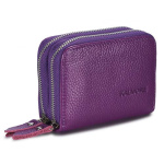 KALMORE Women’s Leather RFID Secured Spacious Cute Card Wallet Small Purse, Purple, Two Zippers