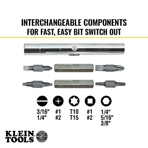 Home DIY & Tools Klein Tools 32500 11-in-1 Screwdriver / Nut Driver Set, 8 Bits (Phillips, Slotted, Torx, Square), 3 Nut Driver Sizes, Cushion Grip Handle
