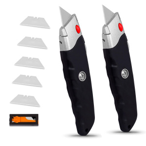 Internet's Best Premium Utility Knife - Set of 2 - Retractable Razor Knife Set - Box Cutter - Rubber Handle