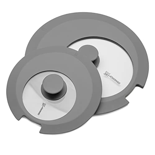 Home Home & Kitchen LORESO Silicone Glass Lid for Pots & Pans, Grey Pack of Two – Universal Lid for Pots Pans & Skillet 6 to 11 Inches with Removable Side Handle, Tempered Glass Lid with Side Handle Cut, Food Safe Silicone, Cool Touch Handle and Dishwasher Safe