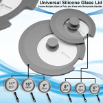 Details: Our universal pot lid is an automatically adjustable pan lid which features a layered brim for fast size adjustments. NO action required. The silicone lip instantly adheres to pots, pans & skillets of varying sizes. Use the larger lid to cover 9-inch pots or 11-inch pans & the smaller lid to cover 6″ pots or 8″ skillet pans. All you need is these universal glass lids to ‘cover’ day-to-day cooking needs. MULTI SIZE PAN LIDS – Just 1 Lid Accommodates Multiple Sizes! Meet the world’s finest no-fuss, easy adjust, space-saving universal lid cover for pots & pans. The magic is in the graduated brim sculpted to fit different sizes of cooking pots & saucepans. SET OF 2 LID COVERS – Lids Together Cover 6 inch – 11 inch Pots Universal large pot lid performs as an 11-inch pot lid or 9-inch pot lid, while the medium lid can be used as a universal sous vide pot lid for 6″ to 8″ sauté pans, sauce pans or skillets. SUPERIOR QUALITY – Strong Tempered Glass + Sturdy Silicone Rim Unlike solid silicone lids, these glass pot lid covers are not the least bit flimsy. The covers are made out of tempered glass, fitted with silicone bands & finished with side cut for handle & steaming. Tidy up cabinets & cupboards with our universal silicone pot lids, the space saver cookware home chefs prefer. Smarten up, scale down & save space. Our multi fit lids are recommended for RV life, homes with small kitchens, student dorm rooms, campus apartments, studio apartments & loft living. ✅ Shatterproof Heat-Resistant Tempered Glass Pot Lids ✅ Flexible, Pliable, Automatic Fit to Size Silicone Brim ✅ Side Cut for Ventilation + Cool Touch Knobs for Safety ✅ Dependable Dishwasher Safe Food Grade Materials Get organized using our universal lid with side handle cut!