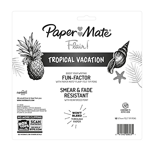 Paper Mate Flair Felt Tip Pens, Medium Point, Special Edition Tropical Vacation, Pack of 12