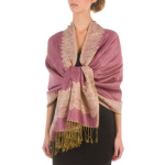 Sakkas Border Pattern Layered Reversible Woven Pashmina Shawl Scarf Wrap Stole – Mauve