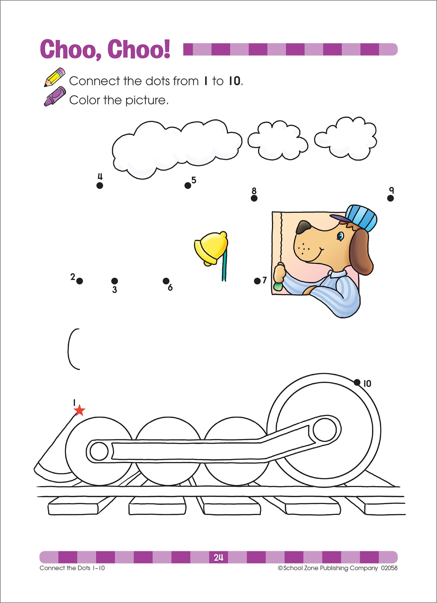 School Zone – Connect the Dots Workbook – 32 Pages, Ages 3 to 5, Preschool, Kindergarten, Dot-to-Dots, Counting, Number Puzzles, Numbers 1-10, Coloring, and More (School Zone Get Ready!™ Book Series)