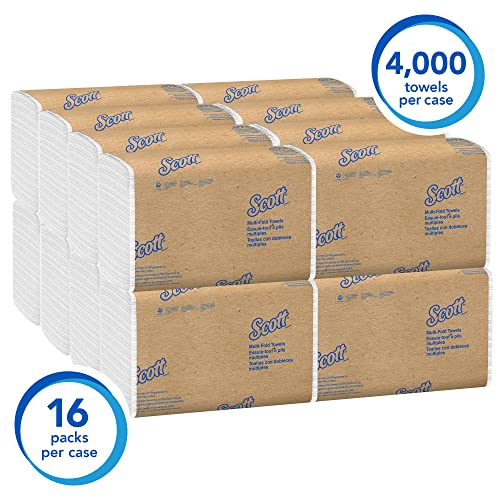 Home Home & Kitchen Scott Essential Multifold Paper Towels (01840) with Fast-Drying Absorbency Pockets, White, 16 Packs / Case, 250 Sheets / Pack, 4,000 Towels / Case