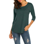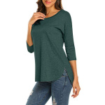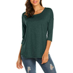 Home Clothing, Shoes & Jewelry Sherosa Women’s Casual 3/4 Sleeve Loose Tunic Tops Scoop Neck T-Shirt (L, Dark Green)