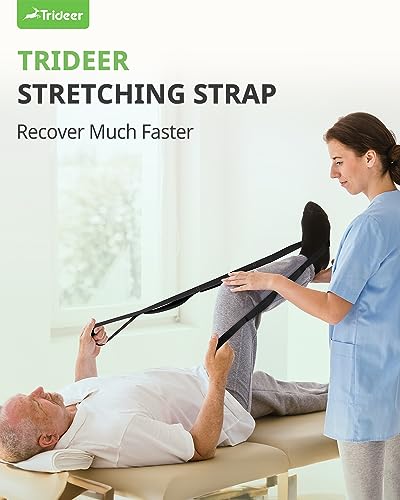 Details: The purpose of Trideer stretching strap is to provide everyone with high-quality, low-cost and durable physiotherapy stretching strap.After preliminary market research and product material research, we selected the durable Polyester material in order to make it more durable and safe for everyone to use, because too soft materials are easy to slip and cause secondary injuries.The design of our 10-ring is also based on extensive research.Suitable for most people’s height, you can safely use it for stretching and physical therapy,You can use it to help you recover from physical therapy after knee replacement surgery to avoid the fatigue of going to and from the physical therapy room. It can also be used for daily muscle stretching and muscle relaxation, or you can also use it to warm up before and after doing yoga. Help you complete yoga movements better.