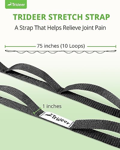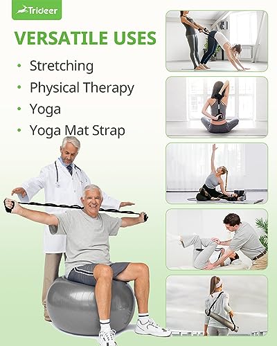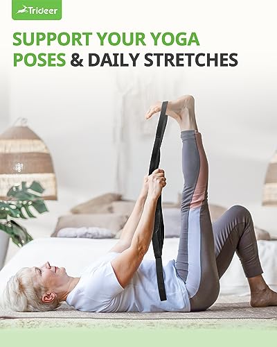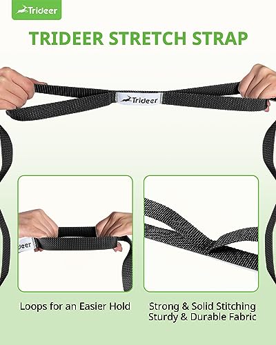 Trideer Stretching Strap Yoga Strap Physical Therapy for Home Workout, Exercise, Pilates and Gymnastics, 10 Loops Non-Elastic Stretch Bands with Aesthetic Packaging for Women & Men (Black)