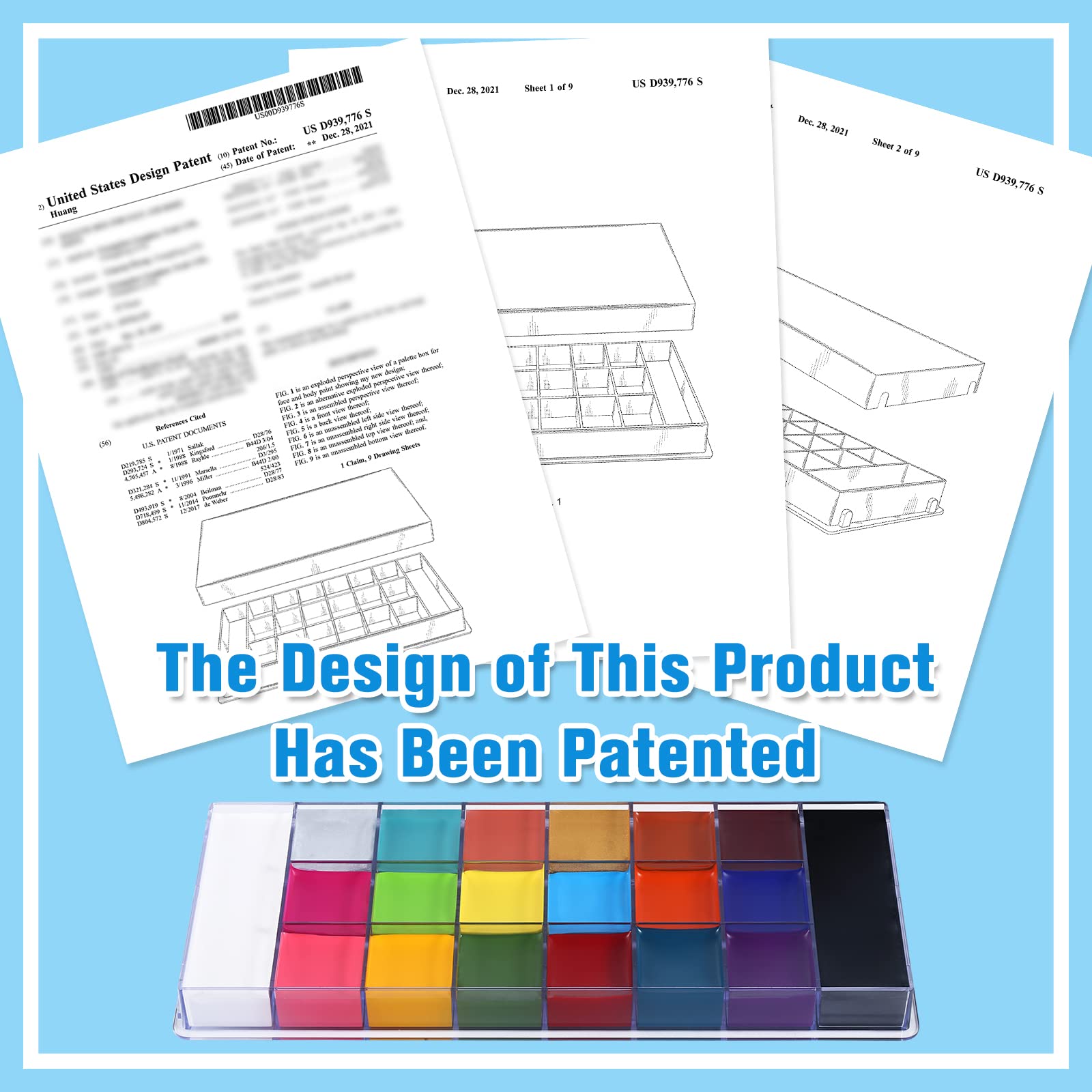 • A Face Body Paint palette refilled 20 creamy intensive pigmented colors in a convenient and sturdy plastic case that applies easily with sponge or brush. It can be used on the face and body.